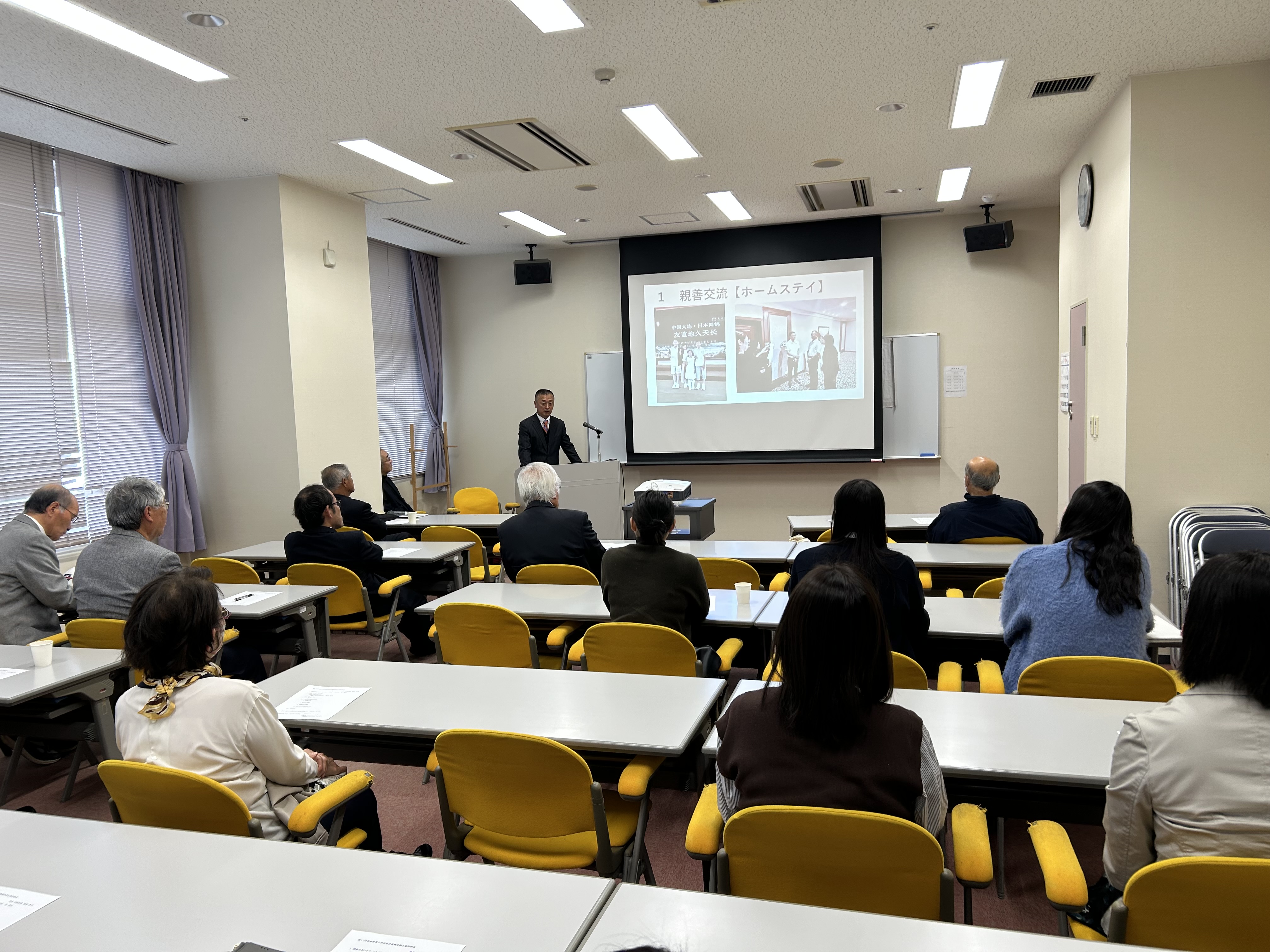 「友好の種を育てる」の演題で実施しました「第11回京都教育大学同窓会舞鶴支部主催研修会」の報告をします。参加者は23名(内 一般市民4名)。今年度再開した舞鶴市少年使節団の大連市(中国)派遣事業について、団長に事業の概要や、参加した児童たちと大連市の子どもたちの交流の様子などを語ってもらい、「視野が広がった。」、「英語を学ぶ大切さが分かった。」などの児童の感想が紹介され、事業を通して児童たちが多くのことを学び経験したことを理解することができました。